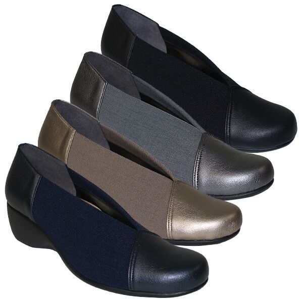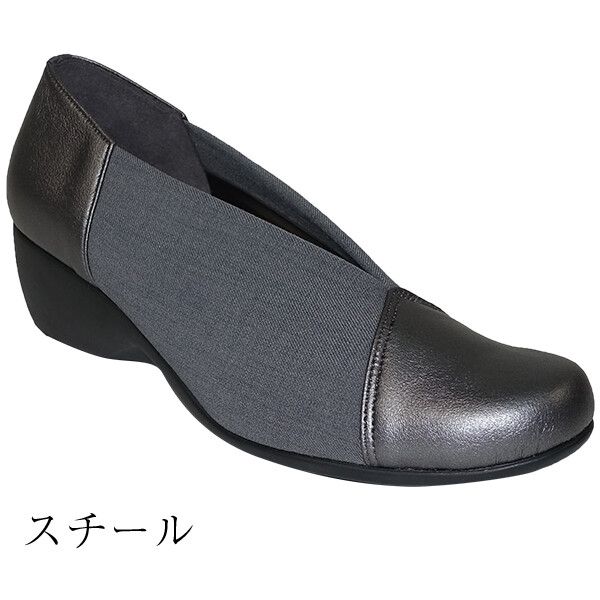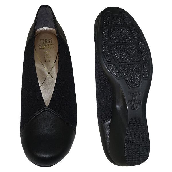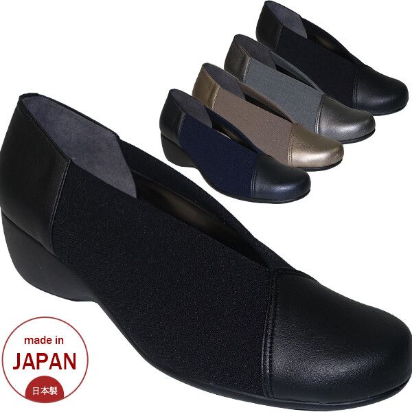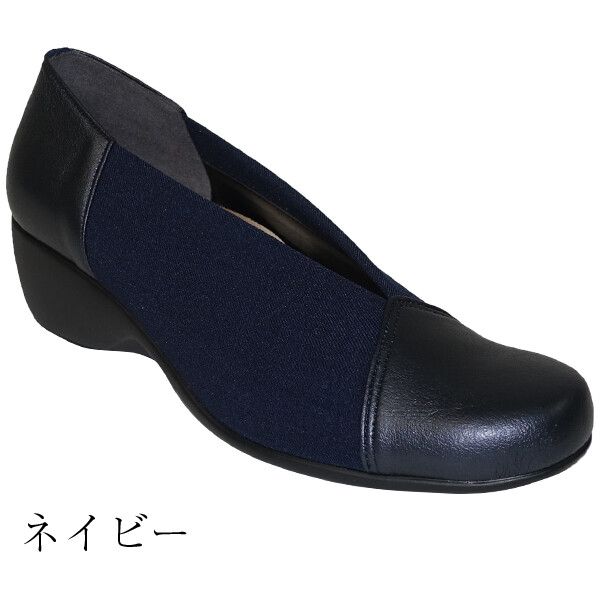 パンプス レディースシューズ レディースファッション 靴 日本製 Vカット 異素材MIX ウエッジソール ファーストコンタクト 柔らかい生地 【送料無料】