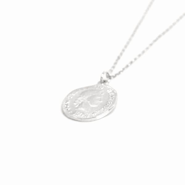 | 英国女王をイメージしたモチーフの変形コインペンダントネックレス♪ ゆるく歪んだコインがとても可愛く、胸元を美しい輝きで華やかに演出します◎ どんなスタイリングにも相性抜群なのでデイリーはもちろん、ちょっとしたパーティーにもお勧めです☆ ※表と裏は同じ絵柄になります。 |