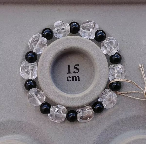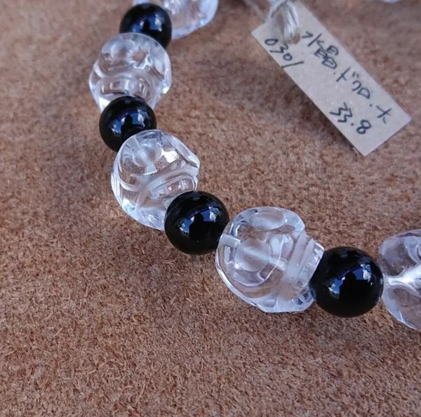| 粒の大きさ オニキス(ドクロ):約13mm 水晶(ラウンド):約8mm 粒数:各10 内径:約15cm 重さ:33.8g |
