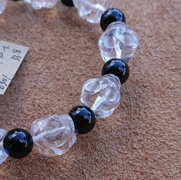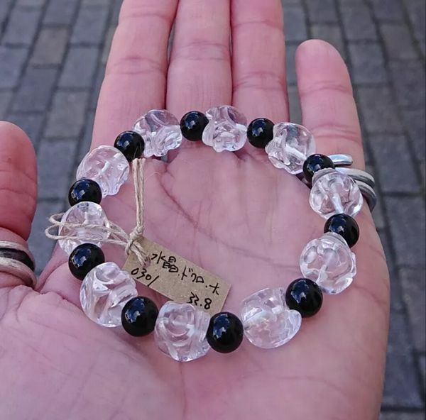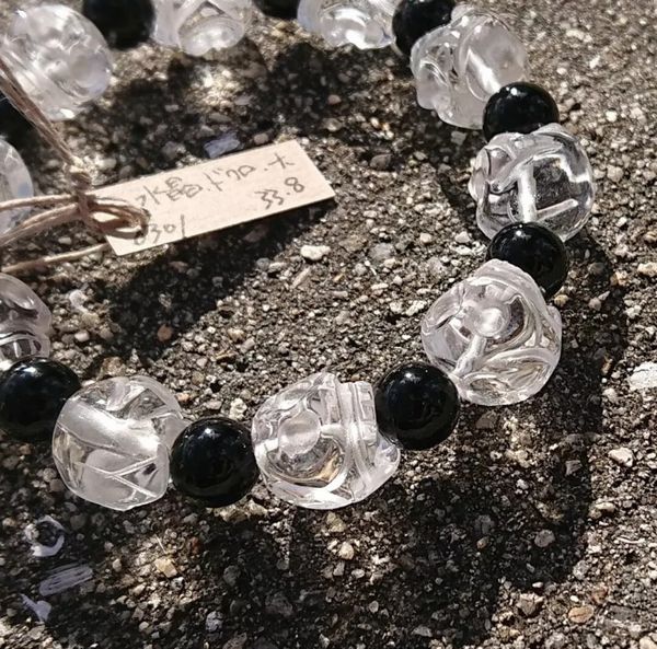 | 立体ドクロ彫りブレスレット 水晶にドクロを立体的に彫り込んだビーズと オニキスのラウンドビーズを組み合わせた オリジナルブレスレットです 【要確認】 天然石には内包物、インクルージョンがあり、多少の凹みやキズがある場合がございます。それらも全て含めまして、その石の風合いとご理解いただけると幸いです。 撮影時の光加減や液晶の環境により、色目が実物と多少異なる場合がございます。 |