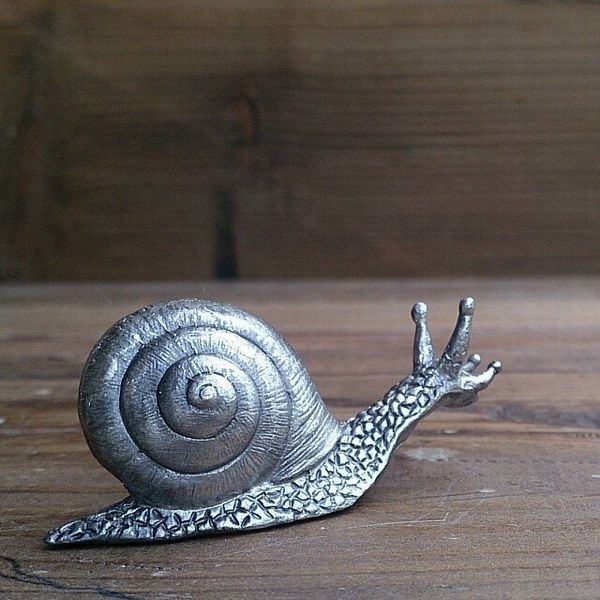 | ピューターで作った エスカルゴ 大 ピューターとは あまり耳馴染みのない言葉かと思いますが、古くからヨーロッパで使われているスズが主成分の合金で、軟らかいスズに強度を持たせるため、銅や鉛やアンチモン等の金属が加えられており、ブリタニアメタルと呼ばれることもございます。 そんなピューター製の エスカルゴのオーナメント 大 あまり無い素材とデザイン 珍しいモノ好きな方にオススメです |