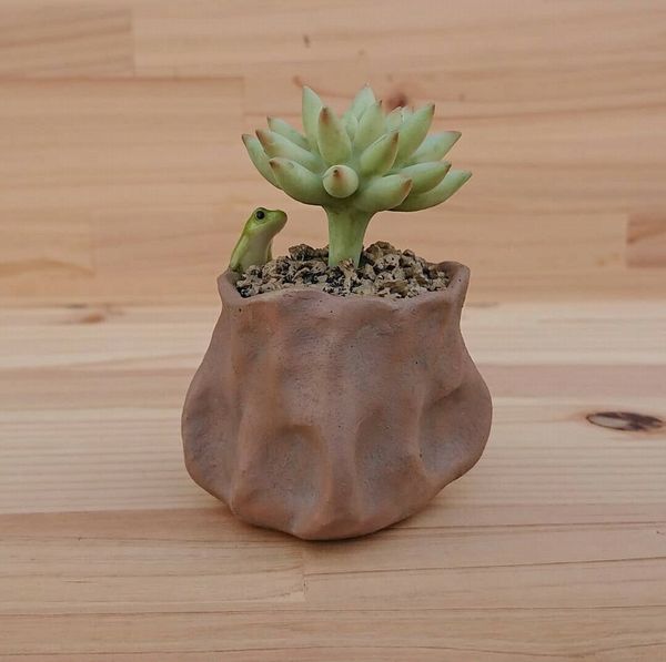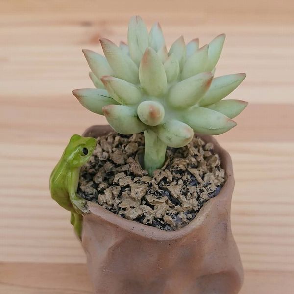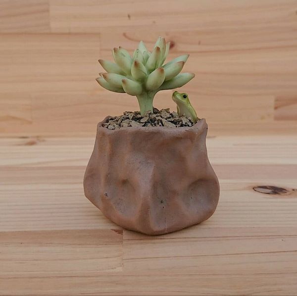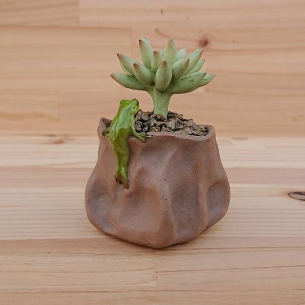 多肉植物と蛙