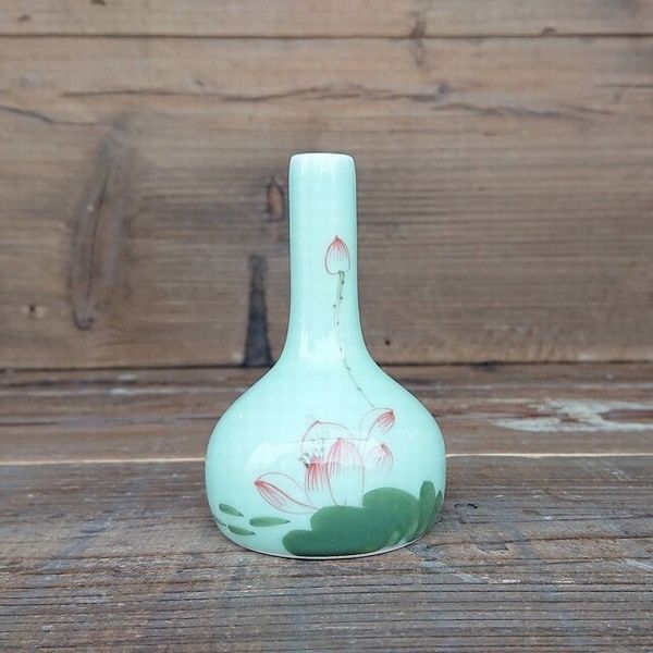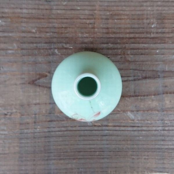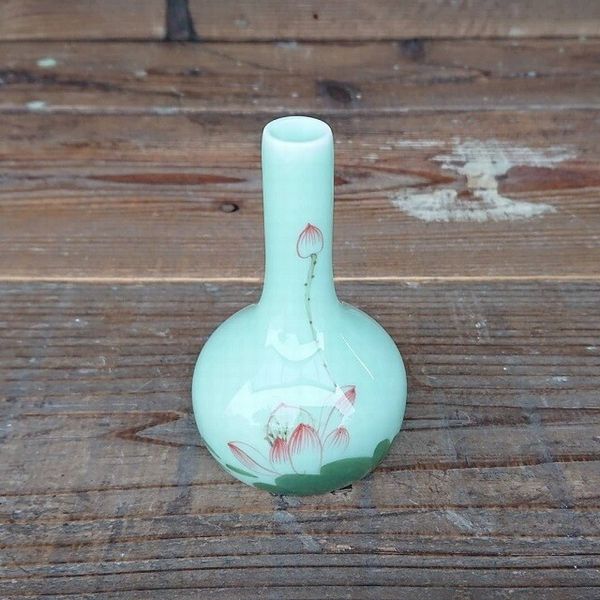 花瓶 花器 フラワースタンド インテリア雑貨 家具 インテリア 龍泉 青磁 一輪挿し 天球瓶 工芸品 淡いグリーン 赤い蓮の花 映える ミニ 【送料無料】