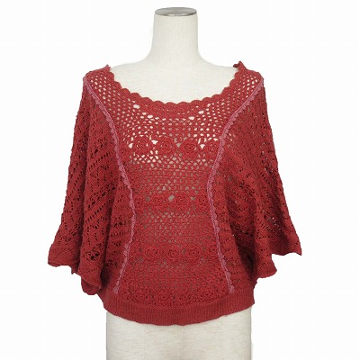 【中古】アクシーズファム axes femme ニット ドルマンスリーブ 透かし編み レース M 赤 レッド レディース