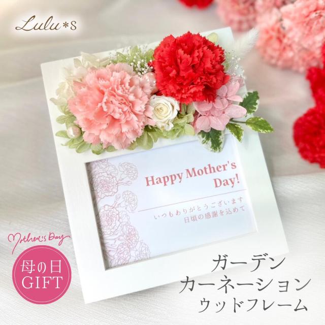 【母の日ギフト】 ガーデン カーネーション ローズ ピンク レッド フォトフレーム ウッドフレーム アーティフィシャルフラワー プリザーブドフラワー ギフト プレゼント 薔薇 紫陽花 あじさい フォト フレーム 写真 誕生日 贈り物 結婚祝い 長寿 慶寿 カーネーションアレンジ