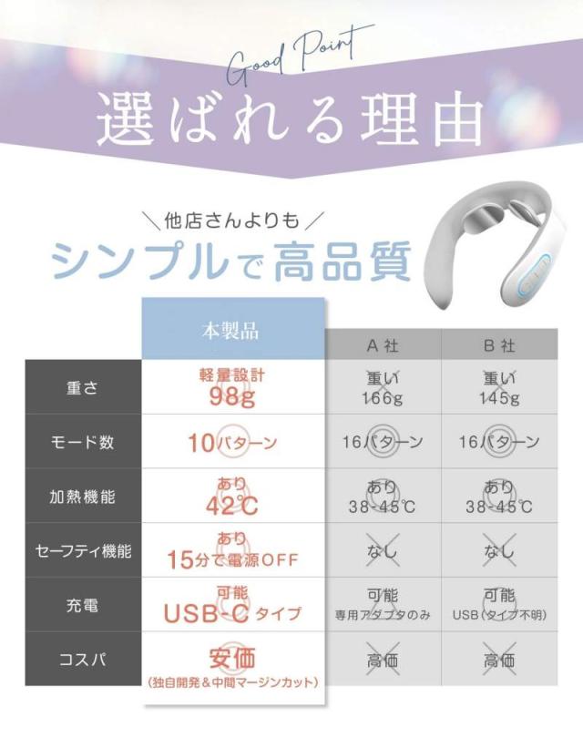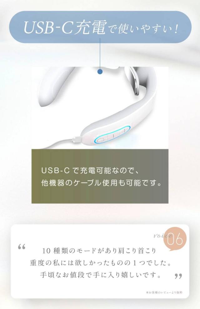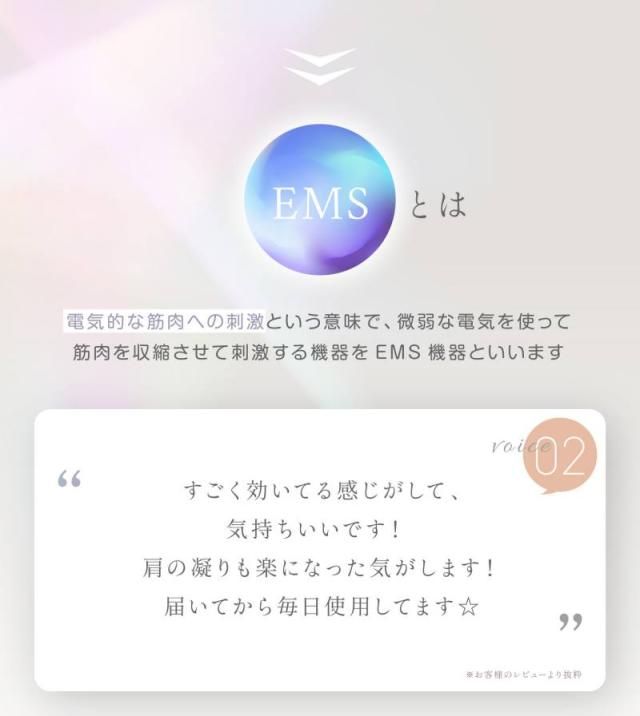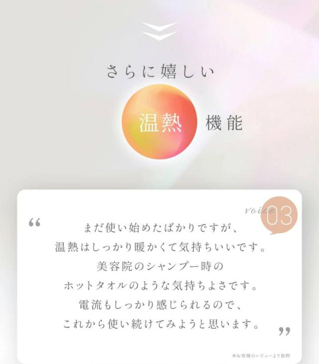 - 動作確認のため開封、充電、使用してみたところ暖かくて気持ち良いです! EMSの振動も強すぎず弱すぎず良い感じ。