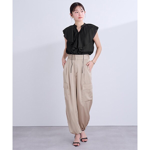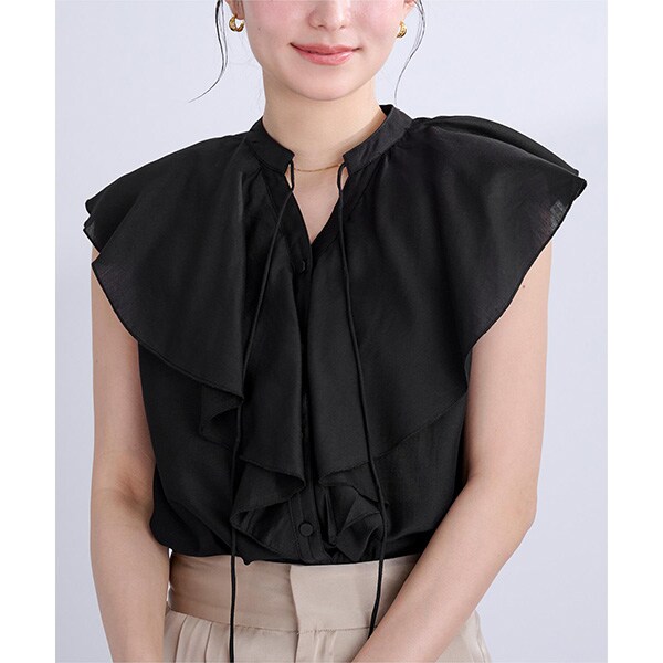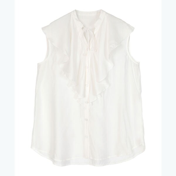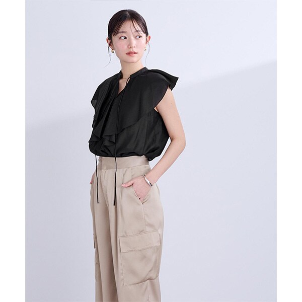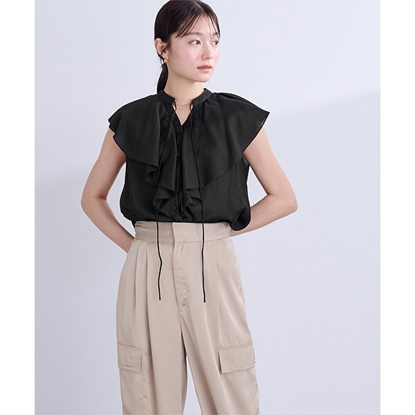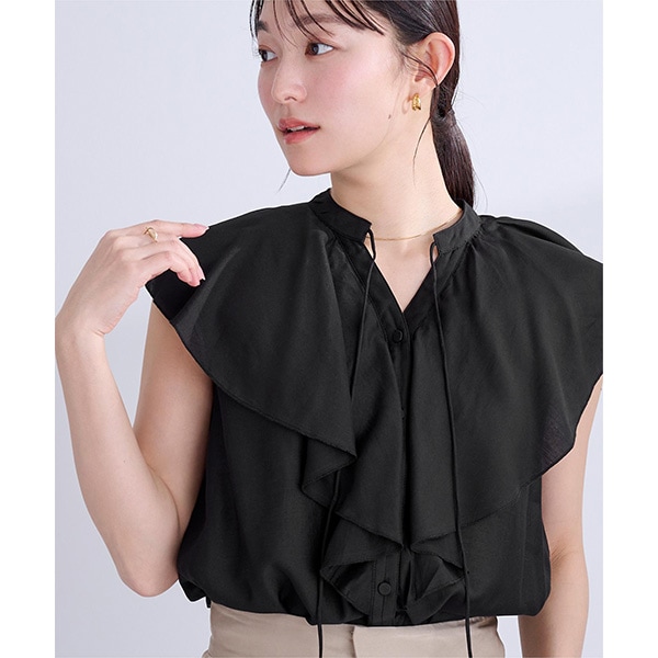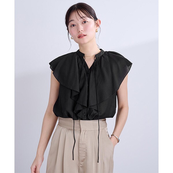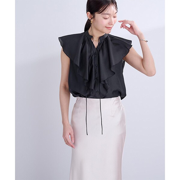 ラッフルのフリルを既存のブラウスより少し長くして華やかな印象に◎