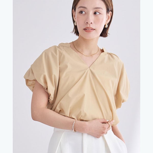 バルーンスリーブがふんわりとしたシルエットで華やかな印象に。