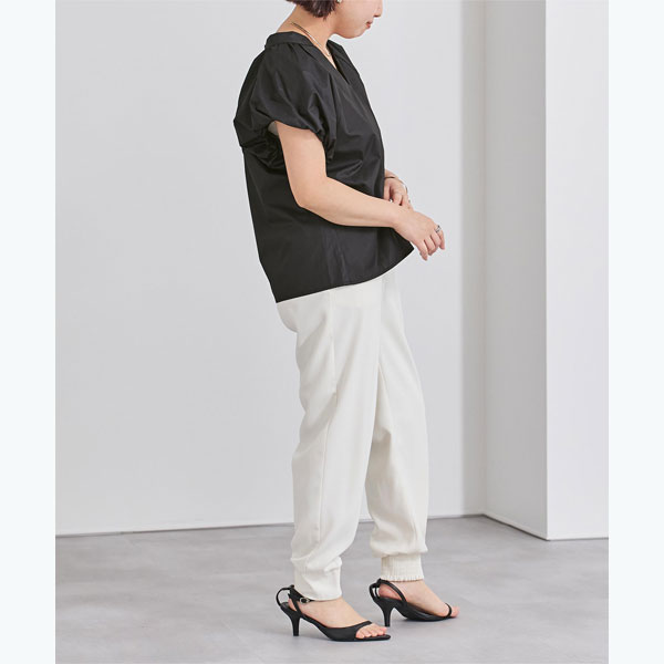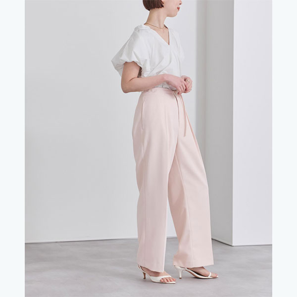 ボトムスのウエストにタックインしますとスタイルアップできます。
