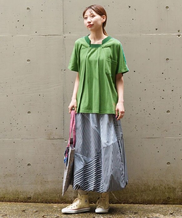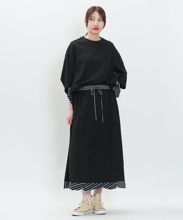 ストライプ3種とカットソーを組み合わせた欲張りスカートの登場です。