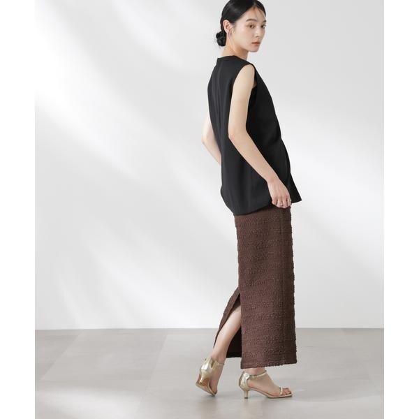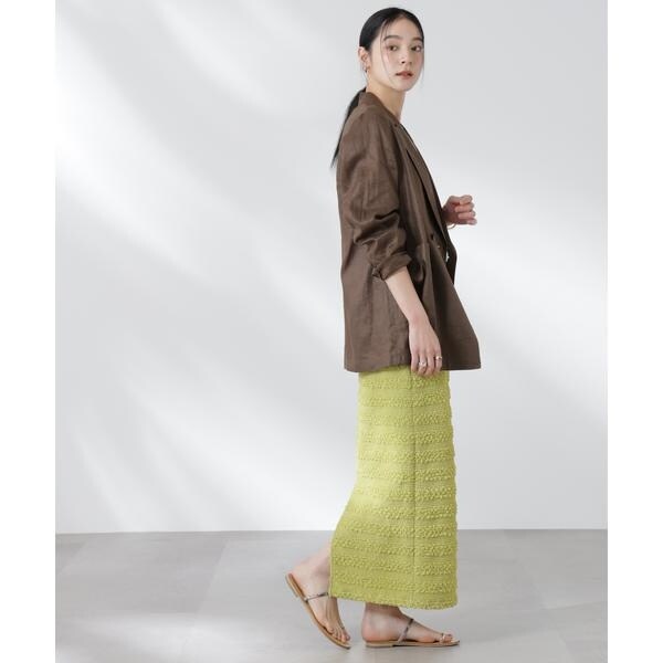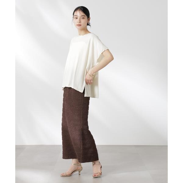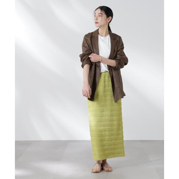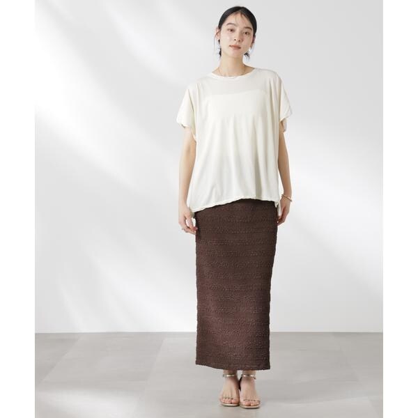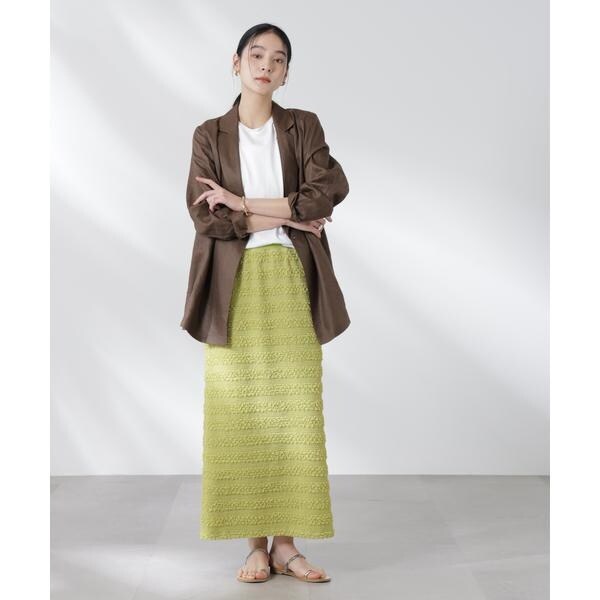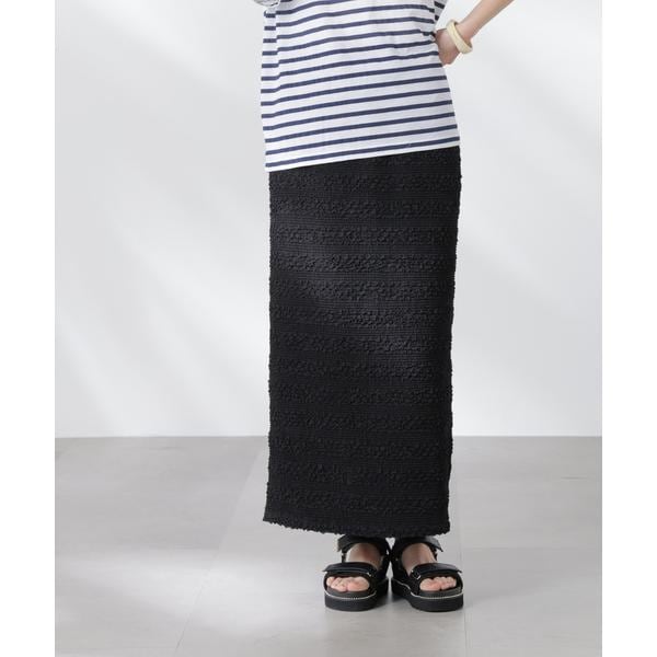 ポコポコした表面感の生地が洒落見えするスカート。大人カジュアルな雰囲気で汎用性が高く、夏のコーディネートのアクセントになってくれるアイテムです。