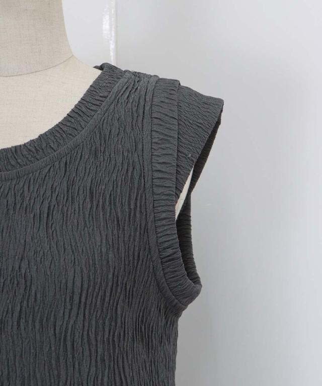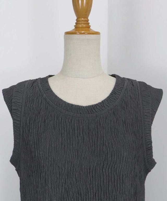 プリーツような薄手のジャガードカットソー生地で涼し気なデザインに仕上げました。
