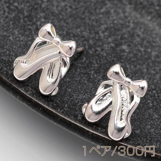 デザインピアス 銅製 バレエシューズ プリマ 踊り子 ダンス リボン付き 約9×11mm(1ペア)