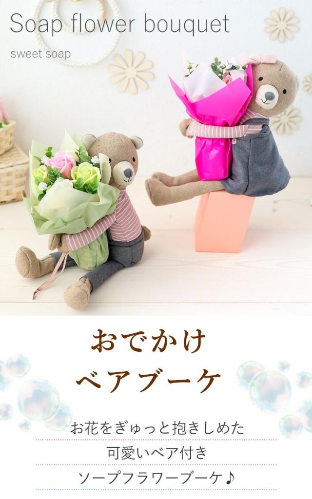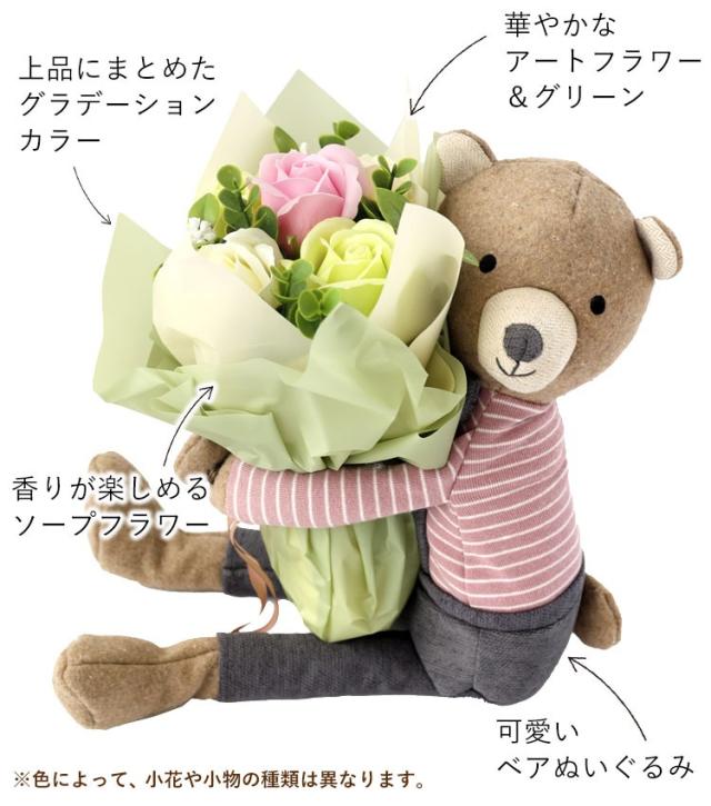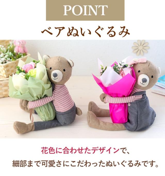 即日発送 ソープフラワー 花束 おでかけベアブーケ 2カラー ブーケ ぬいぐるみ くま 誕生日 プレゼント 結婚祝い フラワーギフト おしゃれ 可愛い お誕生日 結婚記念日 退職祝い 子供 姪 孫 プチギフト ミニブーケ 幼稚園 保育所 発表会 お子様 お祝い 冬ギフト クリスマス