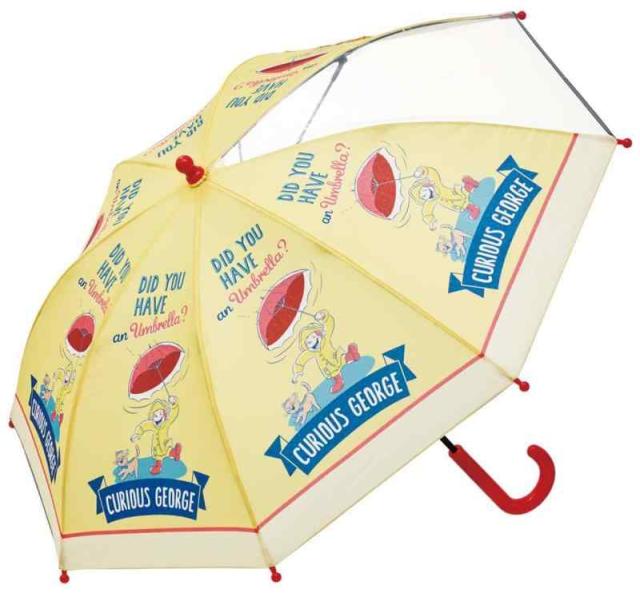 スケーター(Skater) 子供用 傘 45cm おさるのジョージ 5~6才向け 約105~115cm 小学生 視界が確保できる透明窓付き 指を挟みにくい手開き式 8本骨 UB45-A