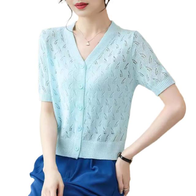カーディガン レディース 透け感 半袖 サマーカーディガン ショート丈 透かし 夏レディースファッション トップス カーディガン ボレロ