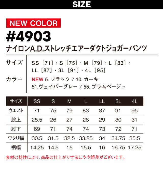 2026年新色追加 アイズフロンティア ジョガーパンツ 4903 全方向ストレッチ 接触冷感 メンズ 春夏作業ズボン 作業パンツ 生地強度 抗ピリング サマーナイロン