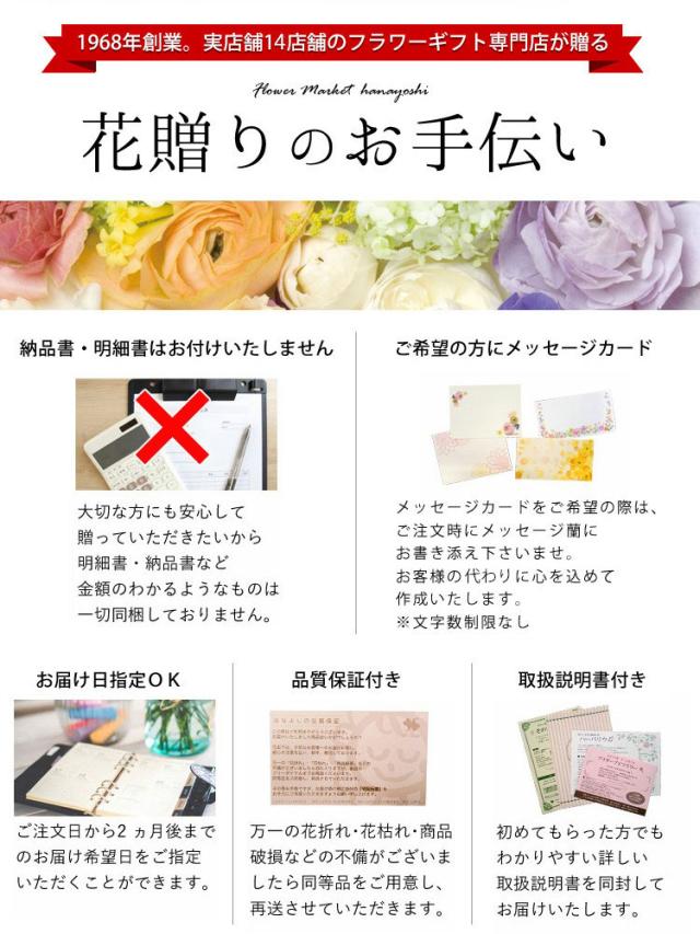 誕生日プレゼント 出産祝い 誕生日祝い フラワーギフト お祝い 誕生日 結婚記念日 古希 喜寿 米寿 卒寿 白寿 百寿 プロポーズ 大還暦 還暦祝い お礼 引越し祝い 結婚祝い 結婚式 電報 新築祝い 引っ越し祝い 開業祝い 開店祝い 記念日 改築祝い 御礼 発表会 楽屋見舞い 楽屋花 コンサート 発表会 法人ギフト 金婚式 銀婚式 花婚式 贈り物 コンサート ホームパーティ イベント 個展 展覧会 展示会 歓送迎 受賞祝い 開店 オープン 御祝 開業祝い 快気祝い 退職 お礼 フラワーバレンタイン ギフト ホワイトデー お返し 卒園祝い 卒業祝い 卒業記念品 合格祝い 入学祝い 卒業式 卒園式 入学式 母の日ギフト 父の日ギフト 敬老の日 クリスマス 男性 女性 母 父 祖母 祖父 お母さん 女友達 友人 先生 先輩 恩師 同僚 上司 両親 妻 彼女