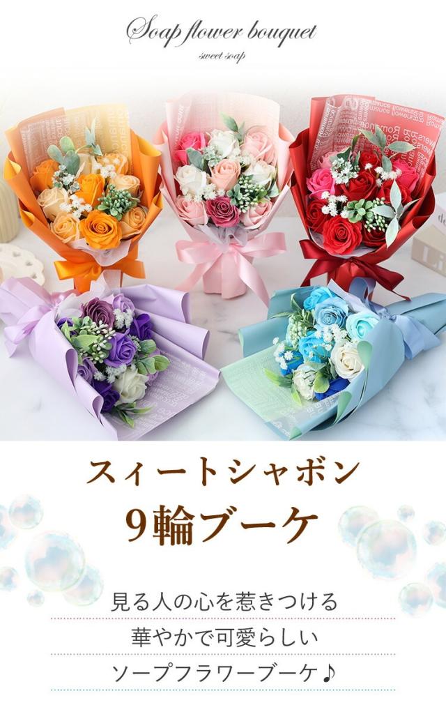 即日発送 ソープフラワー 花束 スイートシャボン 9輪ブーケ 選べる 5カラー ブーケ 花 誕生日 プレゼント フラワーギフト おしゃれ 可愛い お誕生日 結婚記念日 子供 姪 孫 お祝い プレゼント ゴージャス シャボンフラワー 楽屋花 開店祝い お歳暮 御歳暮 冬ギフト クリスマス