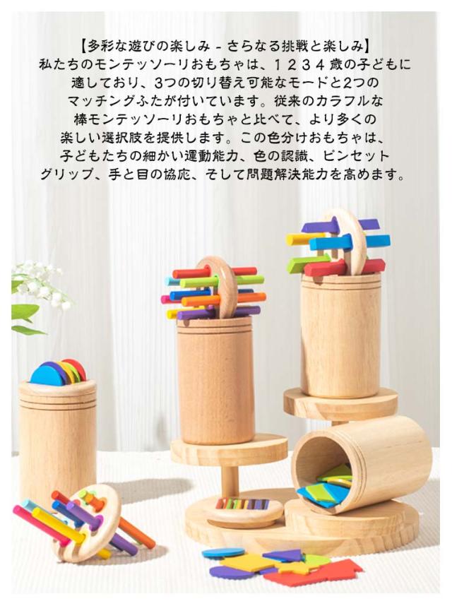 | 【多彩な遊びの楽しみ - さらなる挑戦と楽しみ】私たちのモンテッソーリおもちゃは、1 2 3 4 歳の子どもに適しており、3つの切り替え可能なモードと2つのマッチングふたが付いています。従来のカラフルな棒モンテッソーリおもちゃと比べて、より多くの楽しい選択肢を提供します。この色分けおもちゃは、子どもたちの細かい運動能力、色の認識、ピンセットグリップ、手と目の協応、そして問題解決能力を高めます。 【特別に強化されたふた、脱落防止】他の色の分類おもちゃと比べて、私たちの製品は幼児向けに特別にデザインされています。ふたは特別に強化されており、遊んでいるときに落ちるのを防ぎ、手で固定する必要はありません。 【注意力を高める ? 幼児を忙しくさせる】仕分けゲームは、棒やコインを対応する色の穴に入れることで、お子様の好奇心を引き出します。小さな手に合わせて特別にデザインされたコンパクトなサイズで、木製のベビートイは持ちやすく、鮮やかな虹色が小さなお子様の注意を引きます。楽しいぽっとん落としおもちゃの遊び方は、細かい運動能力を育て、好奇心旺盛な赤ちゃんを飽きさせません! 【安全で健康的な素材】私たちのモンテッソーリ 知育玩具、1?4歳の幼児向けに作られており、優れた木材を使用し、有害な化学物質や不快な臭いを含んでいません。安全性を重視したこれらのおもちゃは、滑らかで丸みを帯びたエッジで、鋭い角やバリがなく、耐久性にも優れています。お子様が安心して遊べる完璧なアイテムです。 【持ち運びに最適で、どこでも遊べるおもちゃ】私たちのモンテッソーリおもちゃは、キャンバス製の巾着袋が付いており、持ち運びに便利です。自宅でも、保育園でも、旅行先でも、このモンテッソーリおもちゃセットは、1?4歳の幼児に最適な感覚遊びのおもちゃです。お子様に楽しくスクリーンなしで遊べる教育的な遊びを提供し、無限の時間を楽しんでいただけます。 【幼児に最適なギフト-幼児教育おもちゃ】この色彩分類おもちゃは、鮮やかな色彩と触り心地の良さが特徴で、遊びを通じて学齢前の子どもの学習能力を高めたいと考える保護者や教師にぴったりです。早期の学習と発達を促進するのに最適です。子どもの日、誕生日、クリスマスなどの場面で男の子や女の子へのプレゼントとしても大変喜ばれるでしょう。画面を使わない楽しい遊びを提供し、どんなシーンにもぴっ | |