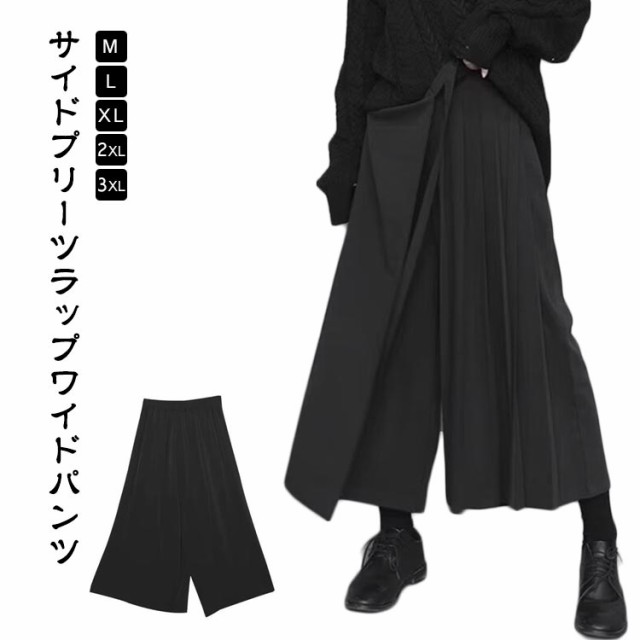 ワイドパンツ プリーツパンツ ガウチョパンツ ラップパンツ 変形 ワイドパンツ ウェストゴム メンズ スカーチョ 個性的 春 夏