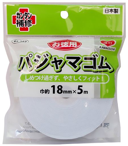 KAWAGUCHI お徳用 パジャマゴム 幅18MM 長さ5M巻 白 93-367