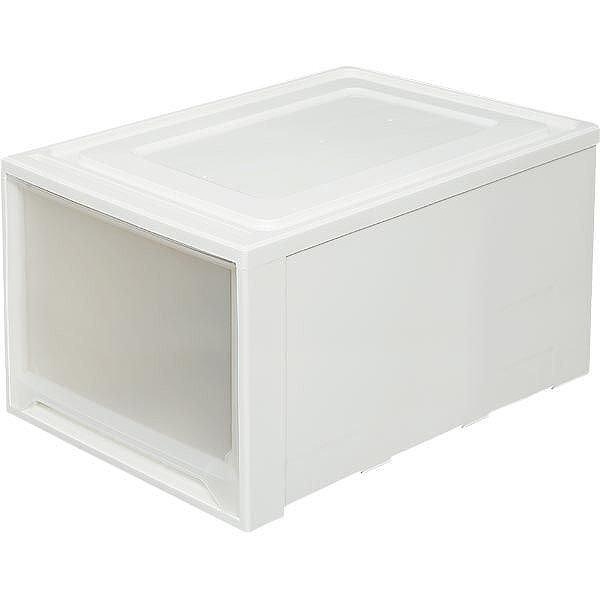 クローゼットでの使用に最適なロングチェスト(奥行き約53cm)です。引出しには開閉がスムーズな金属レールを使用しています。引出しは中身が見えるクリアタイプです。