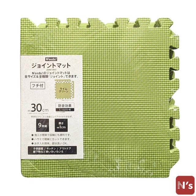 N'eeds! フチ付き 防音 ジョイントマット 30cm 厚さ10mm 9枚組 ライムグリーン インテリア 子供部屋 キッチン フローリング マット おしゃれ 【N's】