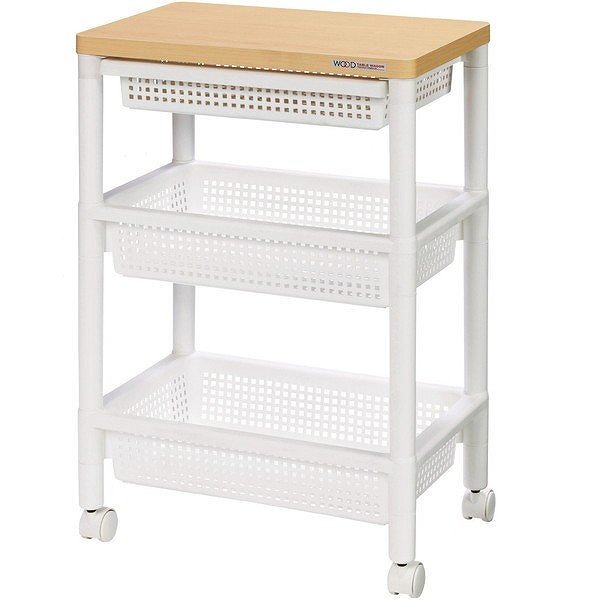 不動技研 ウッドテーブルワゴン WTW-3HS 引き出しバスケット付 ホワイト F2491