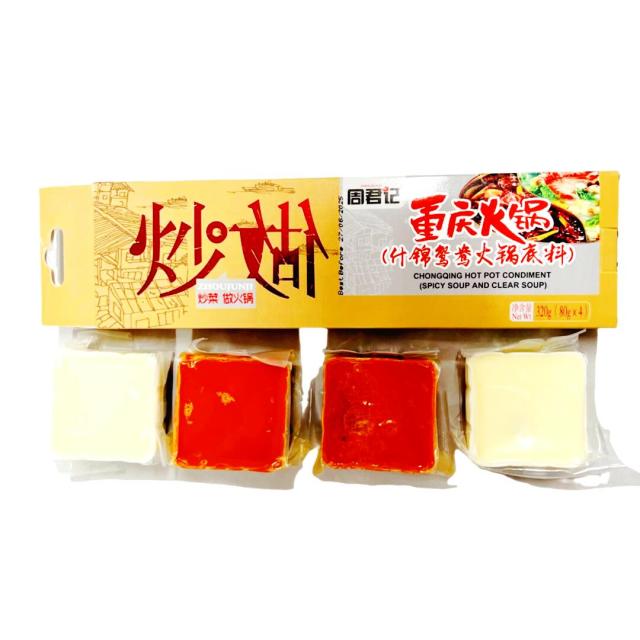 4個割れ ダブル味火鍋の素 炒做重慶火鍋 什錦鴛鴦火鍋 周君記 重慶火鍋底料 80g×4個 おしどり火鍋 火鍋底料 重慶火鍋の素 四川特産重慶火鍋底料 火鍋料 火鍋の素 火鍋底料 中華スープの素 しゃぶしゃぶ オシドリヒナベ