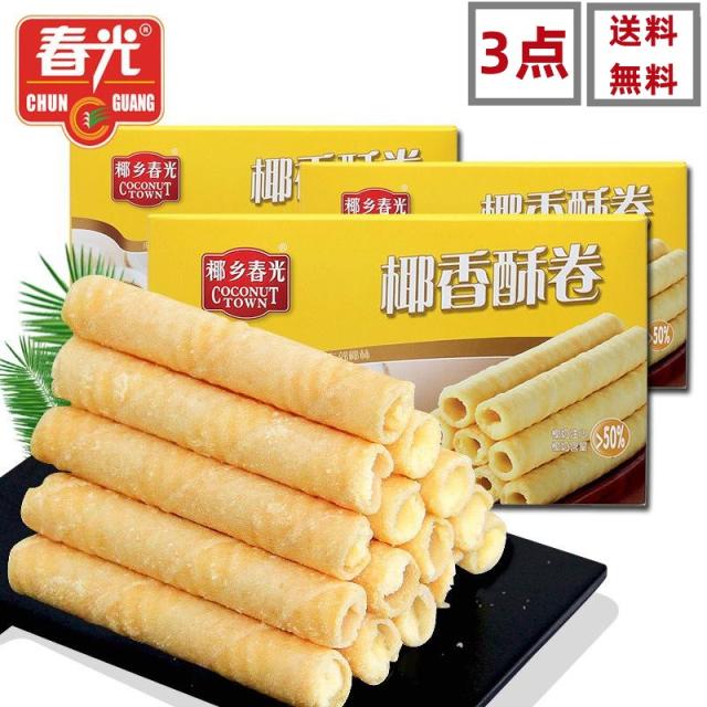 3点セット送料無料 春光 椰香酥巻 (黄色箱) ココナッツ入りロール 150g×3点 酥巻 中華名物人気商品 中国海南特産 中華お菓子