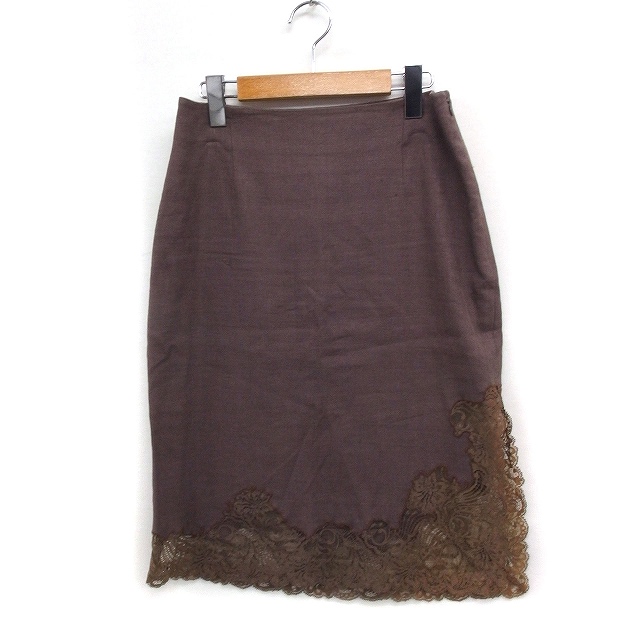 【中古】ビギ BIGI ヘムレース タイトスカート ひざ丈 スリット 無地 リネン 麻 40 ブラウン 茶 /FT46 レディース
