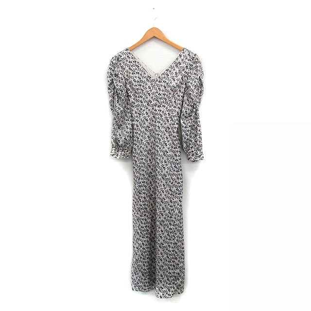 【中古】アンドクチュール AndCouture ワンピース 長袖 ロング Vネック 花柄 38 アイボリー 白 /KT18 レディース