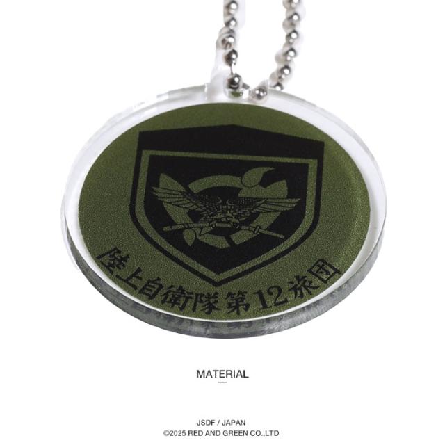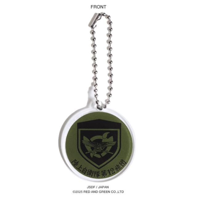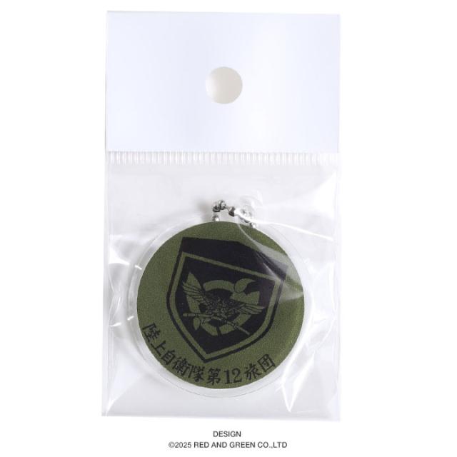第12旅団の部隊章を刻印した、OD色のアクリルキーホルダー。