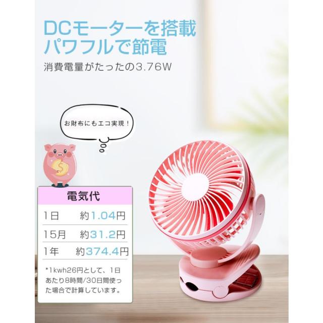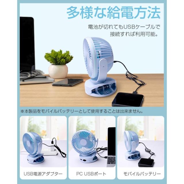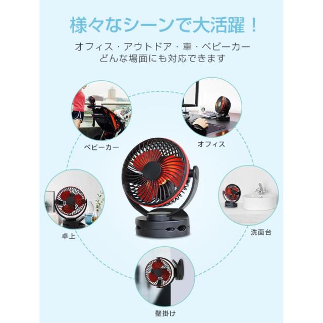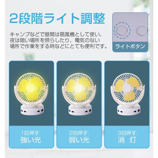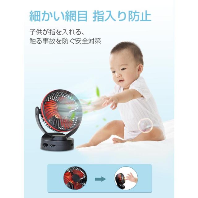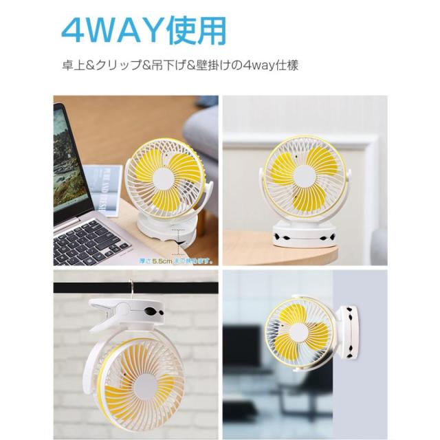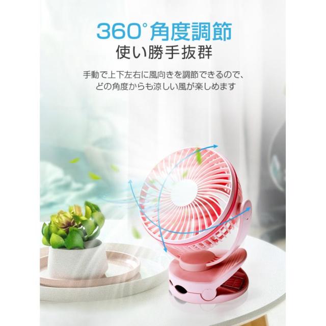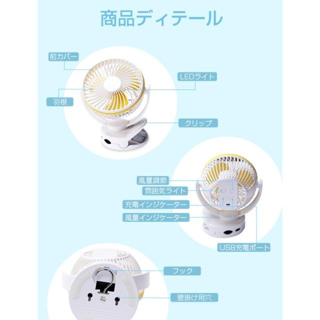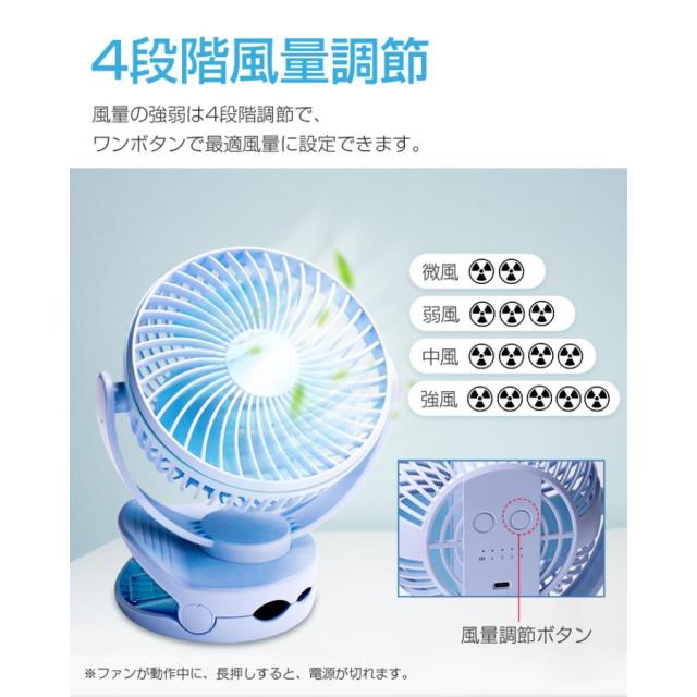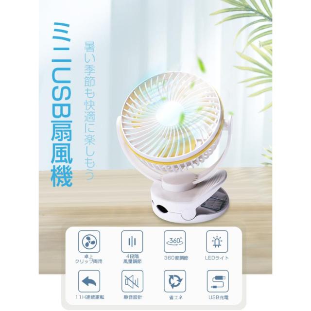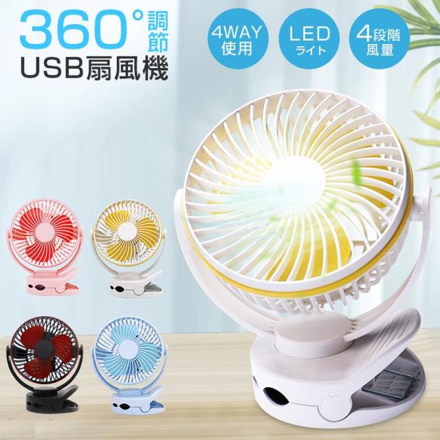扇風機 クリップ USB扇風機 卓上扇風機 ミニ扇風機 強力 ベビーカー 小型 静音 4段階風量 360°首振り LEDライト付き 吊り下げ 壁掛け ベッドルーム 寝る