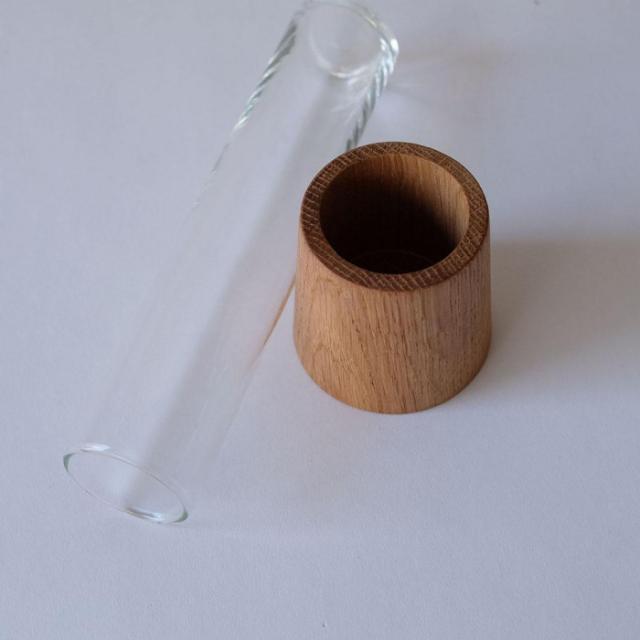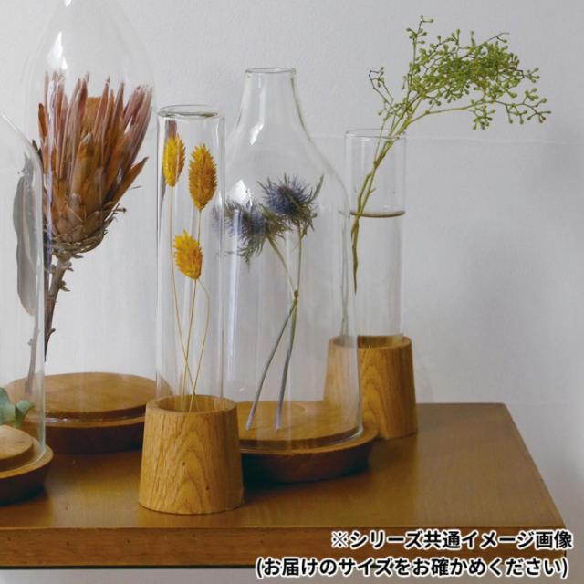 商品詳細:雰囲気のあるフラワーベースとしてはもちろん、ガラス部分をひっくり返してディスプレイドームとしても。ドライフラワーを閉じ込めて大切な人への贈り物に。オークウッドとリューズガラスの組み合わせは相性が良く、ディスプレイの幅も広げてくれます。 生産国:ベトナム 素材・材質:RECYCLE GLASS、OAK WOOD 商品サイズ:φ6.5(BOTTOM)×H24cm
