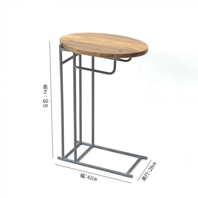 商品詳細:アカシアの木目の天板が上品な空間を演出してくれるサイドテーブルは人気のアイテム。新しいサイドテーブルのご紹介です。丸みを帯びたオーバル型となっており、やさしい印象を加えています。天板の下部分にちょっとした物を引っ掛ける事ができるバーがあるので、お気に入りのルームスプレーを引っ掛けたりなどできるのも嬉しいポイントです。シンプルなデザインなので、あらゆるスタイルの空間やインテリアに馴染みます。 生産国:フィリピン 素材・材質:アイアン、アカシア 商品サイズ:幅42×奥行28×高さ60cm 仕様:耐荷重5kgオイル仕上げ