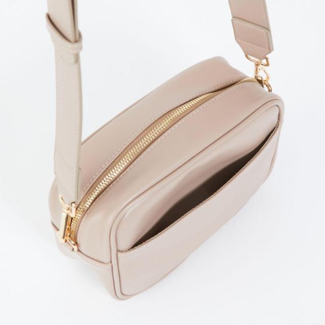 商品概要:環境に配慮したヴィーガンレザーで作られたショルダーバッグ