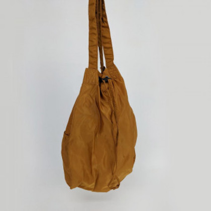 | ナイロンは綿の約10倍といわれているほど、とにかく摩擦に強い素材です。そのため、洗濯による劣化が少なくカビや湿気にも強い素材です。また、撥水生地を使用しているので、アウトドアにもぴったり。ユニセックスでもお使いいただけます。ドローコードをキュッと締めると巾着型シルエットにになります。荷物が増えて、両手をあけたい時には、背面のショルダーをゆるめて伸ばすことで、リュックにもなる仕様です。 |
