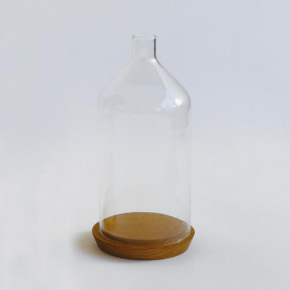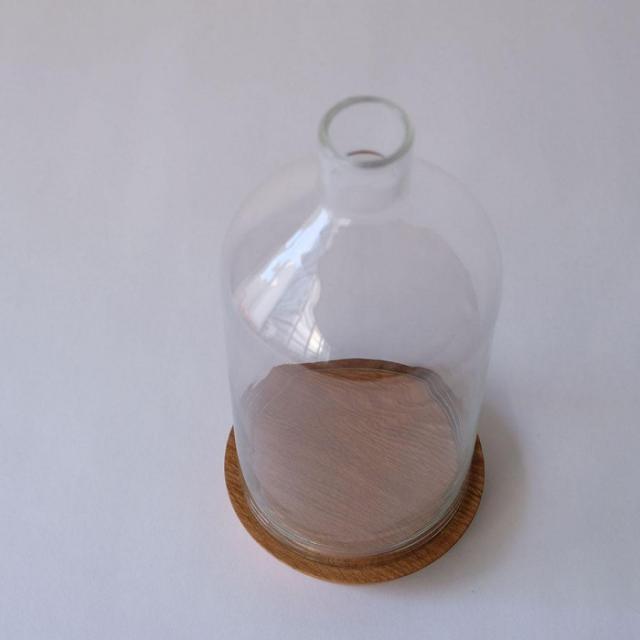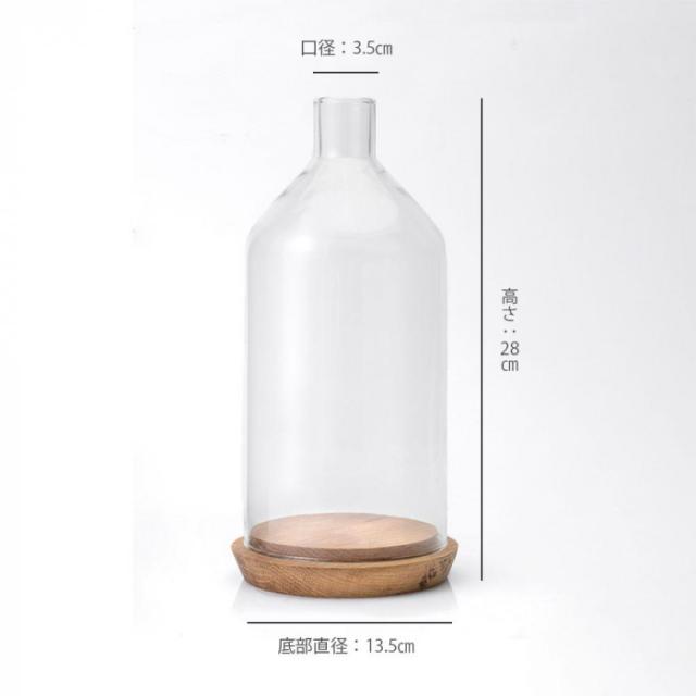 商品詳細:ボトル型のディスプレイドームは、逆さまにしたドライフラワーも茎の部分を逃がしてバランス良くディスプレイできます。口の穴にフックをかけてお気に入りのオーナメントを浮かせて飾ったり、想像力を掻き立てる様々なアレンジが楽しめます。 生産国:ベトナム 素材・材質:RECYCLE GLASS、OAK WOOD 商品サイズ:φ13.5(BOTTOM)×H28cm