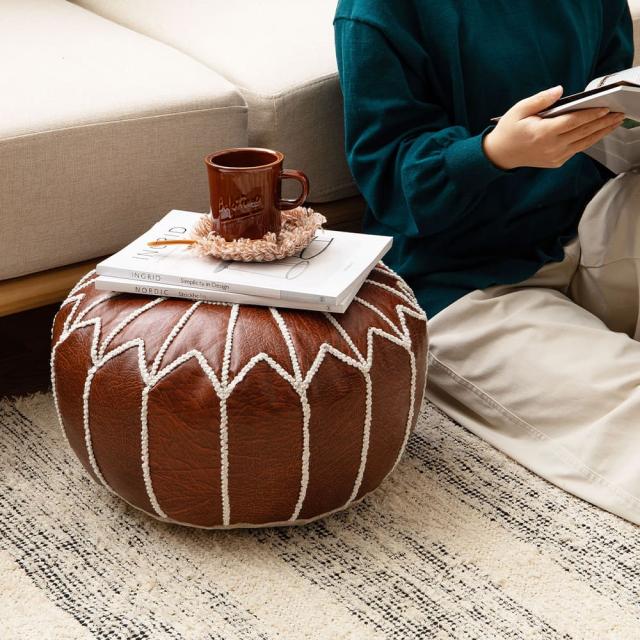 合皮のモロッカンプフ Mサイズ ブラウン 【直送品】 返品・キャンセル・他商品と同時購入は不可