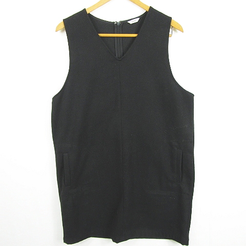 【中古】ミスティック mystic ジャンパースカート ワンピース 膝丈 Vネック F ブラック kz11531 レディース