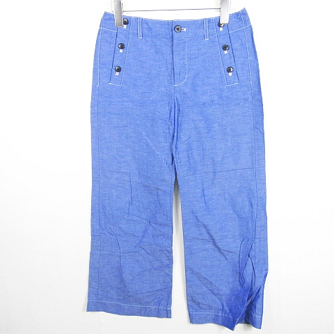 【中古】エミスフェール HEMISPHERES ワイド パンツ 綿 麻 36 ブルー kz11537 レディース