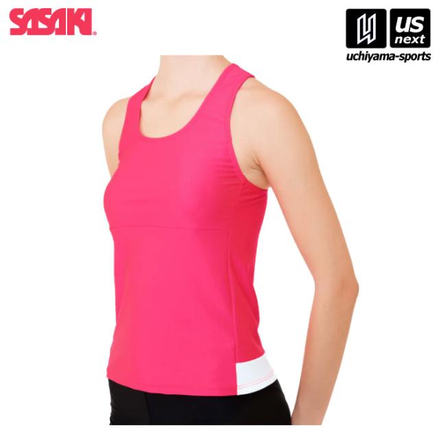 ササキ 新体操 Yバックトップ (カップポケット付き) 蛍光ピンク×ホワイト 7048 沖縄配送不可 [M便 1/1][取り寄せ][自社]