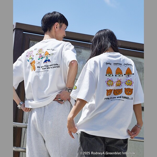 主人公の『パラッパ』、『PJベリー』と『スウィーティー・バンチャ』、『サニーファニー』のグラフィックをプリントしたTシャツが新登場です。