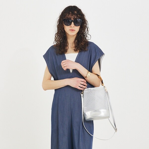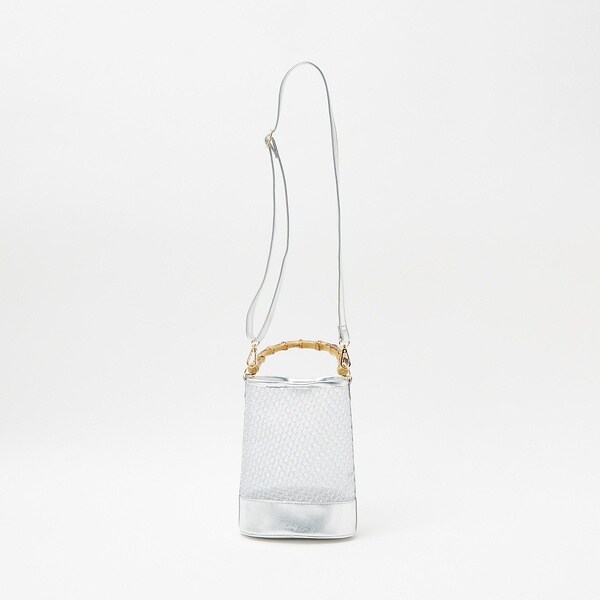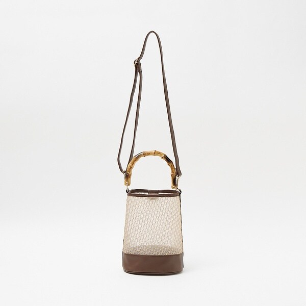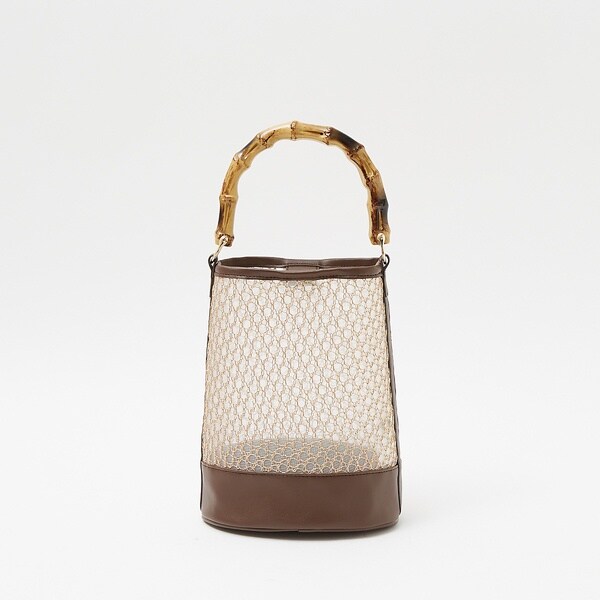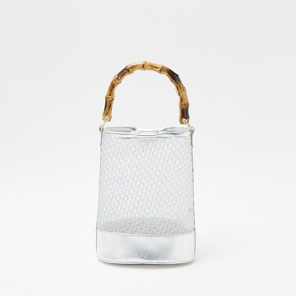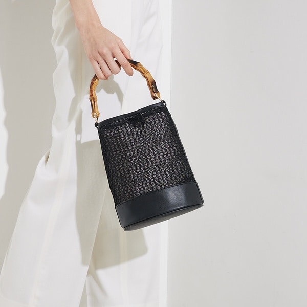 涼しげなメッシュ素材×バンブーのハンドルが上品な印象のバケツ型デザインバッグ。