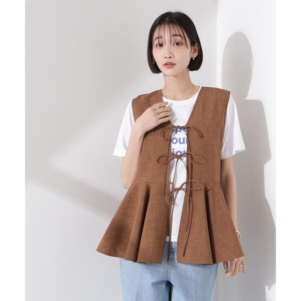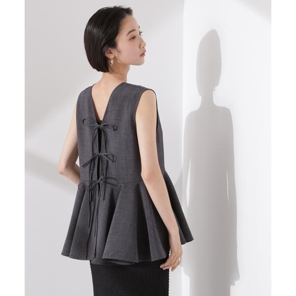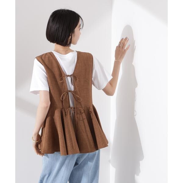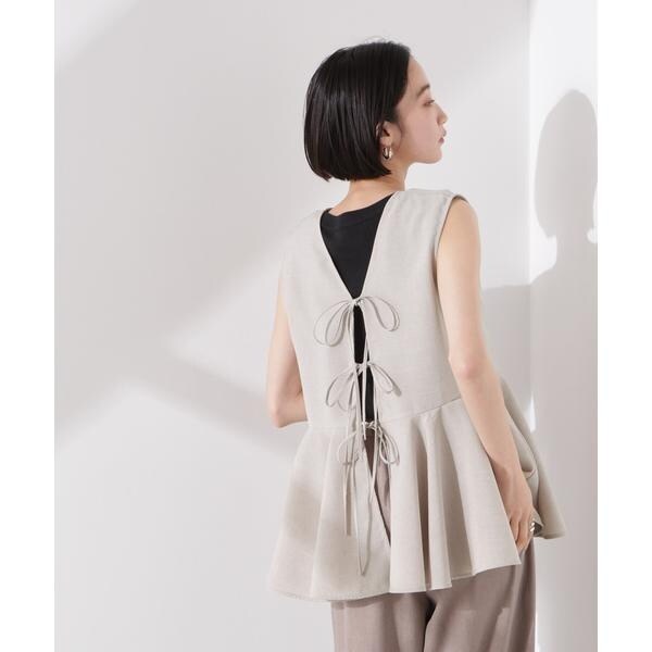 ナノユニバース(NANO universe)/前後2wayリネンライクリボン結びジレブラウス(セットアップ可)