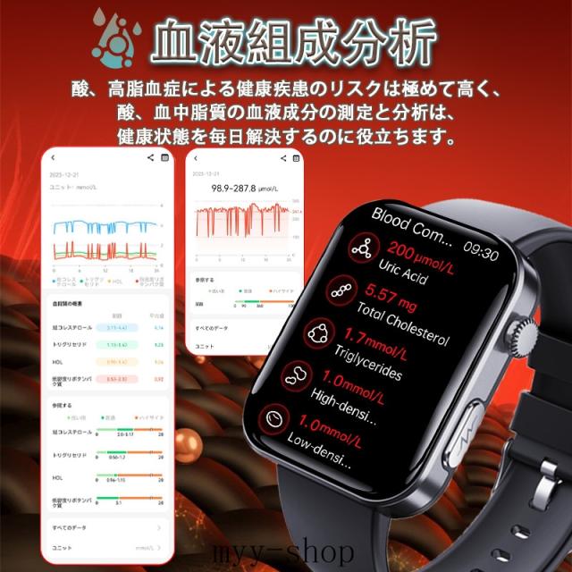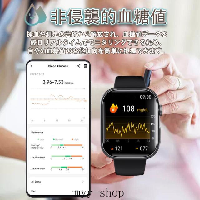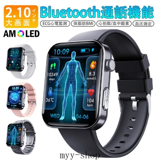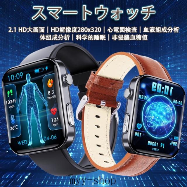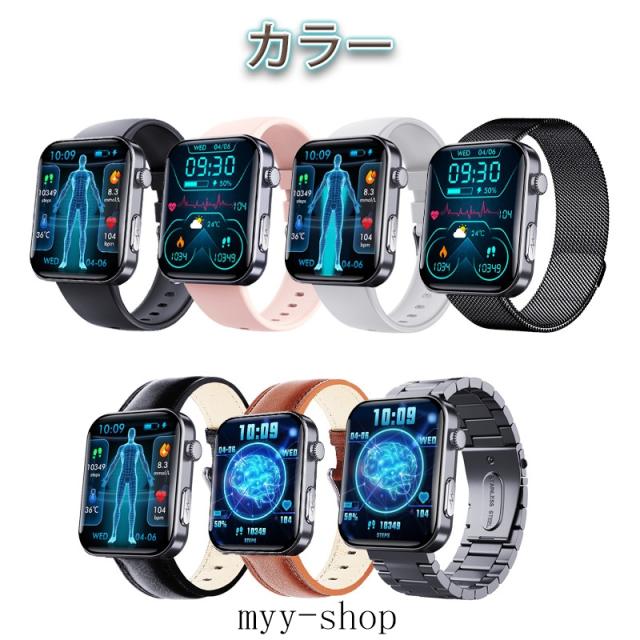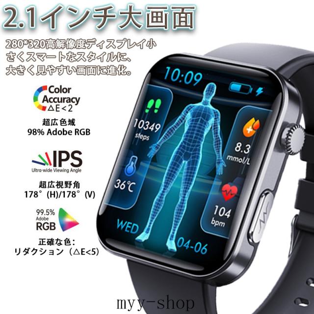 即日発送 スマートウォッチ 血糖値 血圧測定 2.1インチ 通話機能付き ECG心電図 心拍数 血中酸素 睡眠 尿酸 万歩計 SOS警報機能 着信&メッセージ通知 Smart Watch iPhone Android対応 日本語取扱説明書 腕時計 男女兼用 贅沢ギフト プレゼントに最適