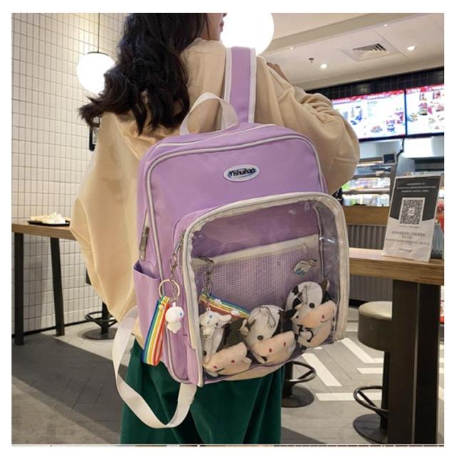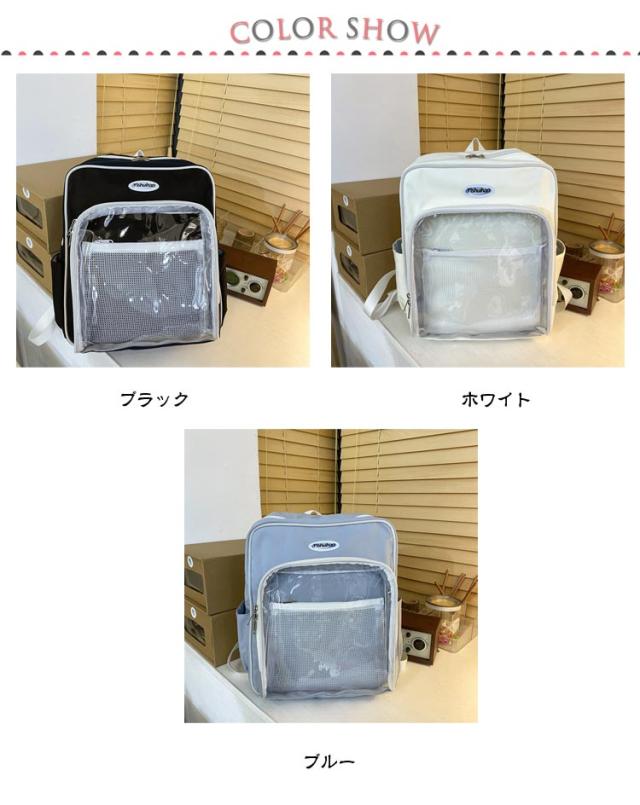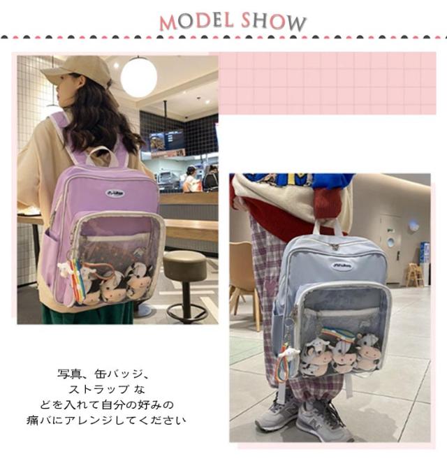 痛バッグ デイリー リュック 大容量 カバン 見せバッグ 缶バッチ レディース ガールズ ぬいぐるみ 通学 学生 ビニールバッグ ビニールバッグ ヲタバ 鞄 クリアバッグ 痛バ 痛バッグ オタクバッグ カジュアル バッグ 大容量 カバン 可愛い かわいい 通学