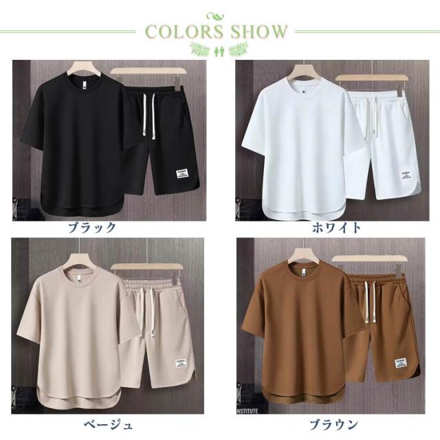 夏服 半袖 Tシャツ セットアップ ショートパンツ 上下セット カジュアル ゆったり 無地 吸汗速乾 メンズ 夏服 カジュアル お洒落 ウエストゴム スポーツウェア ルームウェア 部屋着
